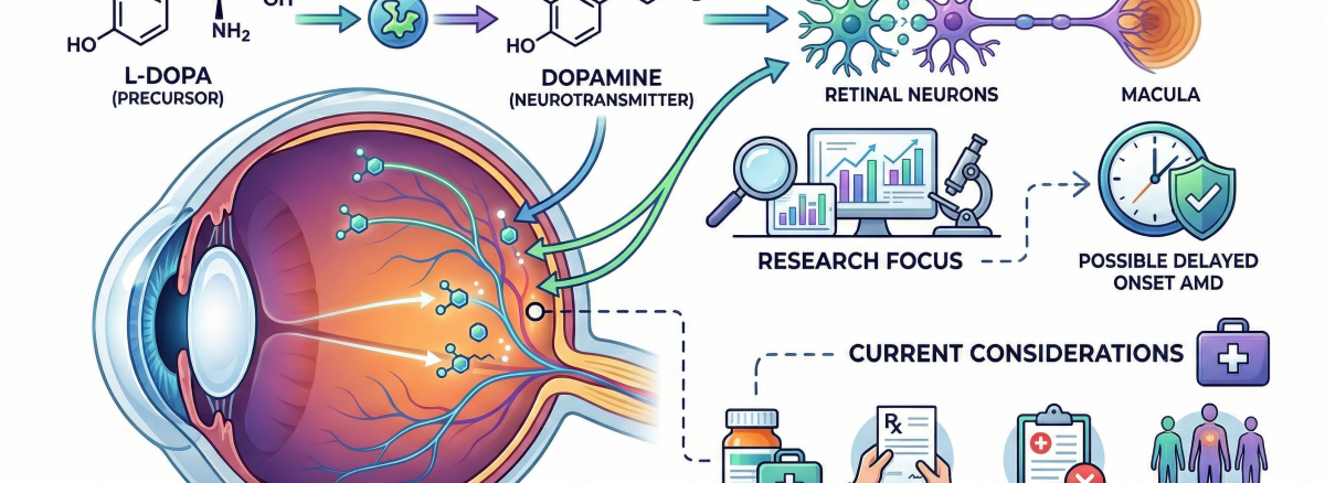 Recent research has explored whether dopamine pathways may influence retinal ageing and macular degeneration.